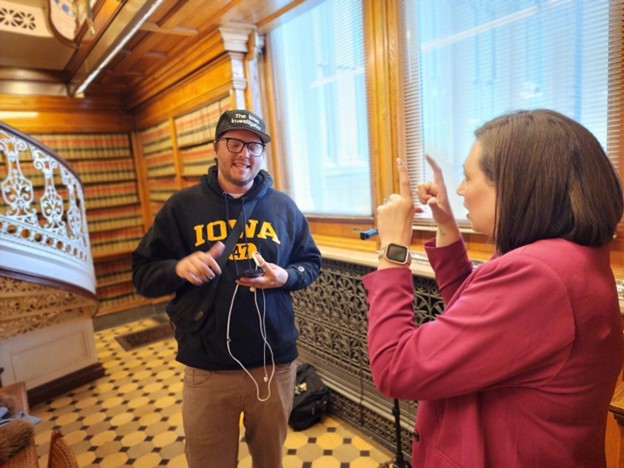 On Wednesday, the Capitol welcomed creators from across the state for Creator Day on the Hill, including JT Vonderhaar — known online as the “Iowa Investigator” — and Elizabeth Fleming (Liz from Iowa) with Iowa Starting Line.